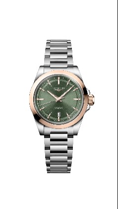 全新康卡斯悦动系列腕表,表盘直径30毫米,采用精钢与18K玫瑰金包金表圈及表冠组合材质,绿色太阳纹表盘搭配玫瑰金镀层指针。3、6、9及12时处立体时标,其余小时以矩形时标呈现,均涂有Super-LumiNova®夜光涂层。配备三折式安全表扣的精钢表链,佩戴舒适且风格百搭。搭载浪琴表专属自动上链机械机芯,内置硅游丝及采用非磁性材料制成的创新组件,防磁性能超过ISO 764标准的十倍。表盘6时位置设有日期显示窗口。