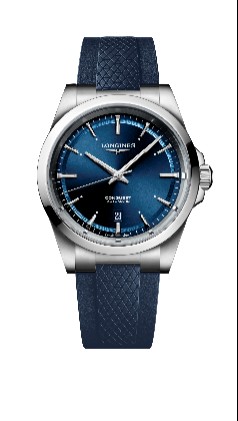 全新康卡斯悦动系列腕表,表盘直径41毫米,精钢表壳搭配蓝色太阳纹表盘,同色表带与表盘相呼应。3、6、9及12时处立体时标,其余小时以矩形时标呈现,均涂有Super-LumiNova®夜光涂层。配备三折式安全表扣的精钢表链,佩戴舒适且风格百搭。搭载浪琴表专属L888.5自动上链机械机芯,内置硅游丝及采用非磁性材料制成的创新组件,防磁性能超过ISO 764标准的十倍。表盘6时位置设有日期显示窗口。绿色橡胶表带饰以沙漏图案,带有可微调的双重折叠式安全表扣。